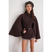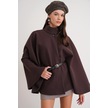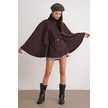 4768 Kadın Kemerli Panço Premium Kaşe Ceket Kahve Kahve