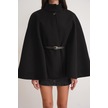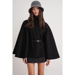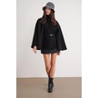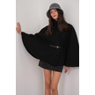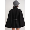 4768 Kadın Kemerli Panço Premium Kaşe Ceket Siyah Siyah