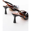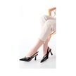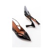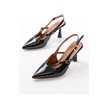 4962 Siyah Rugan Sivri Burun Tokalı Yuvarlak Topuk Kadın Sandalet Siyah Rugan