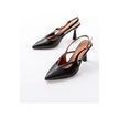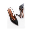 4962 Siyah Sivri Burun Tokalı Yuvarlak Topuk Kadın Sandalet Siyah