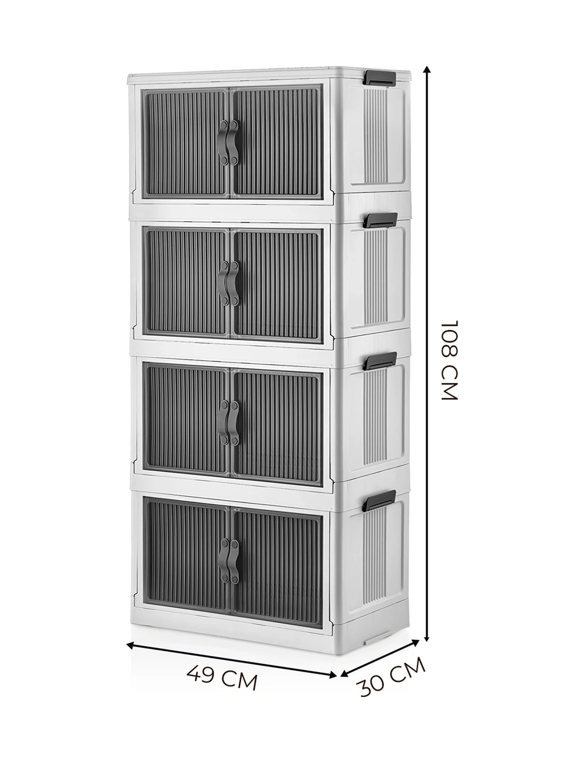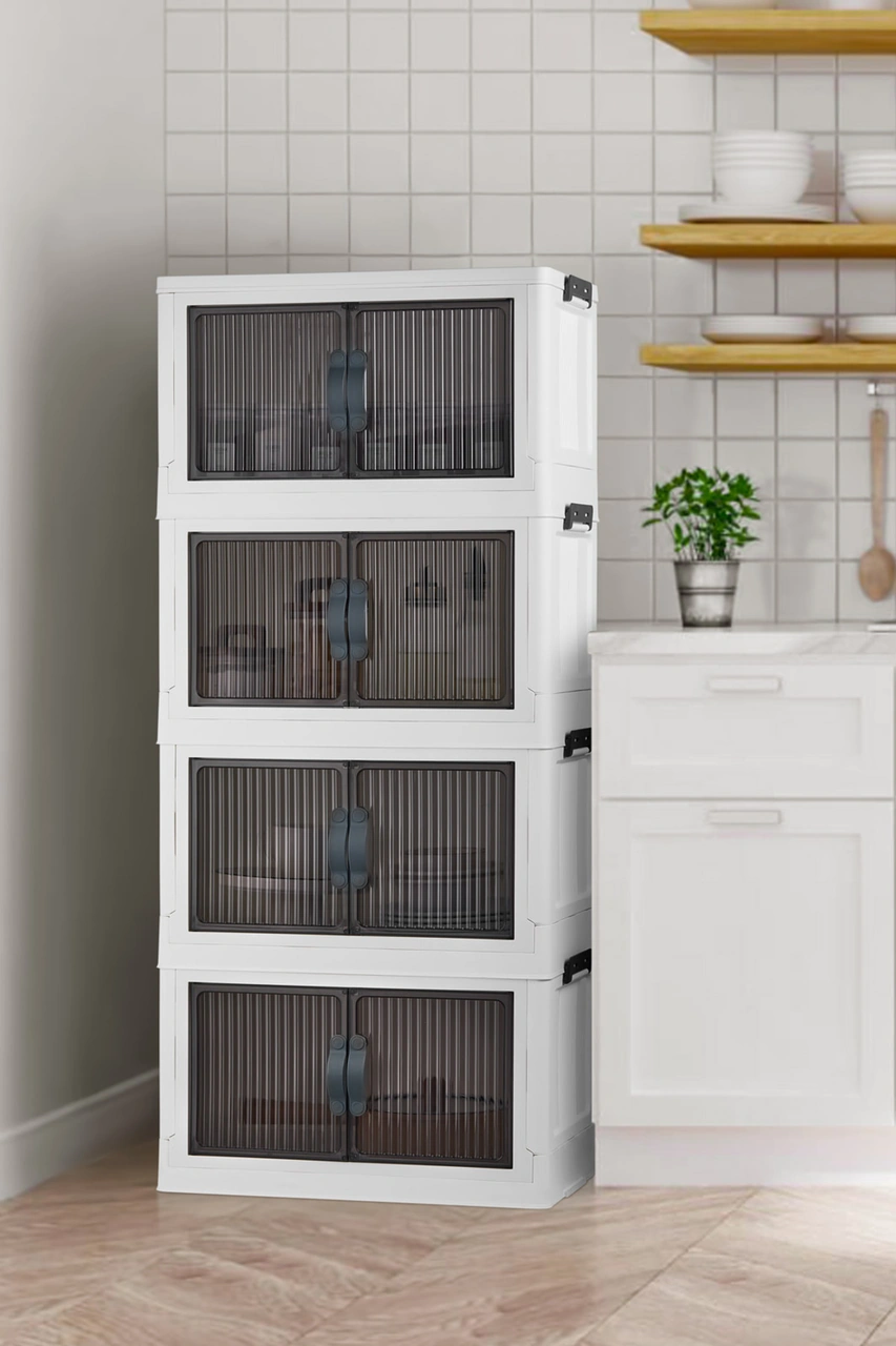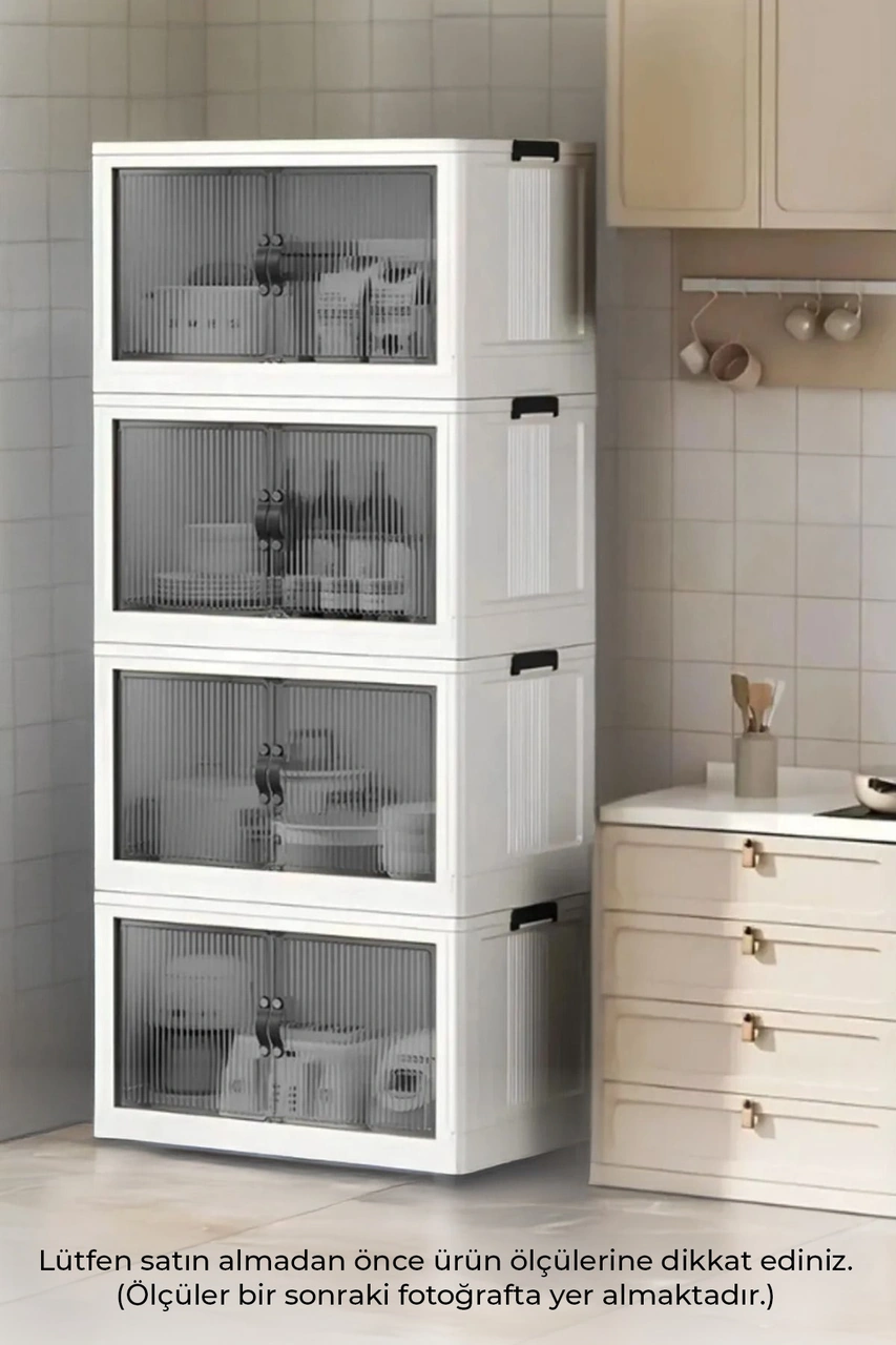 4'lü Portatif Istiflenebilir Organizer Mıknatıslı Kapaklı Dolap - Sert Plastik Mutfak Banyo Dolabı Beyaz