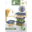 4'lü Set - 800ml Kilit Kapaklı Erzak Saklama Kabı - Difriz Buzdolabı Düzenleyici Saklama Kutusu Mavi Mavi