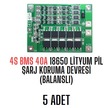 4s Bms 40a 18650 Lityum Pil Şarj Koruma Devresi Balanslı 5 Adet