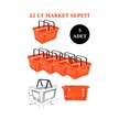 5 adet 22Litre Market ve Alışveriş Sepeti, Saplı Market Sepeti T
