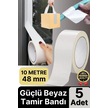 5 Adet Ekstra Güçlü Dayanıklı Su Geçirmez Sızdırmaz Yalıtım İzolasyon Beyaz Tamir Bandı 10 Mt 48 Mm