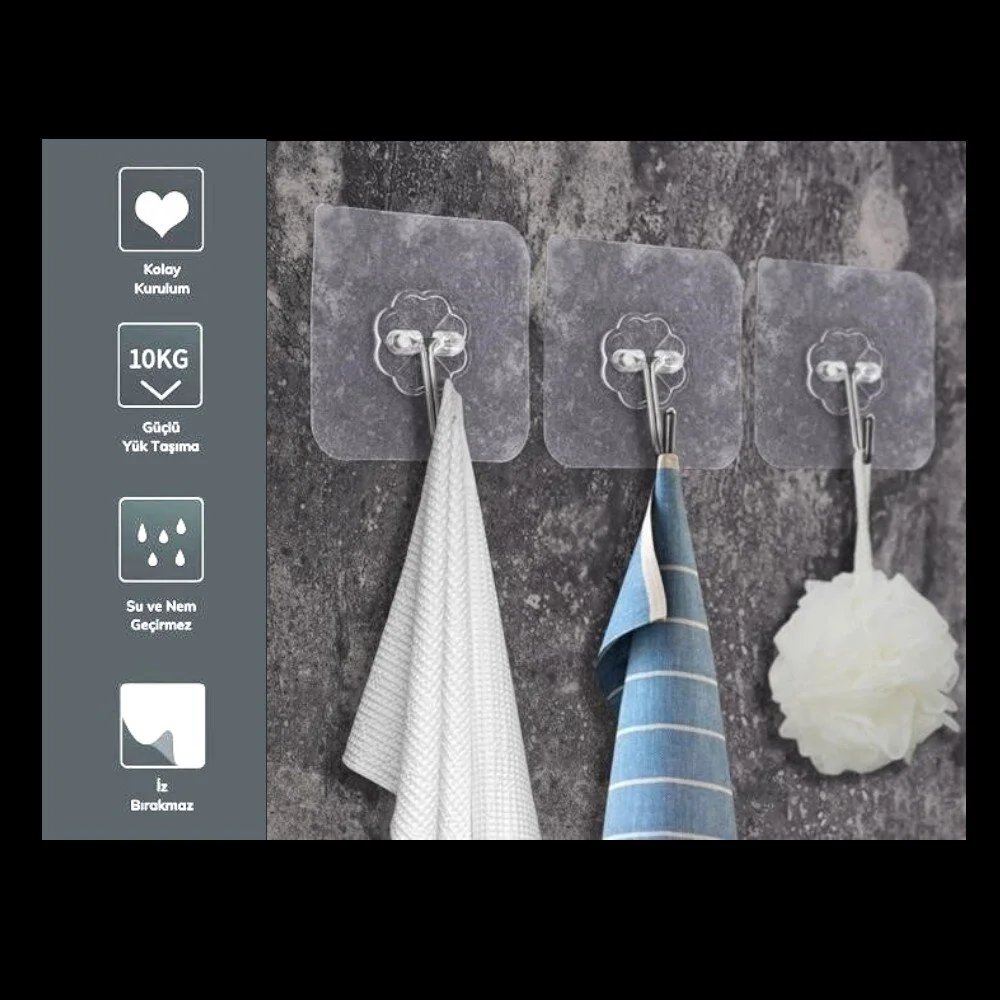 5 Adet Şeffaf Güçlü Duvar Askısı Yapışkan Askılık Vantuz Kanca Mutfak Banyo Düzenleyici