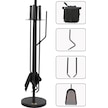 5 Li Lüx Ithal Siyah Yuvarlak Tabanlı Şömine - Soba Maşa Takımı Aksesuar Seti