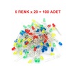 5 MM Led Seti 5 Renk Elektronik Işık Kaynağı Lamba Gösterge Uyarı Sinyali 100 Adet