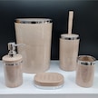 5 Parça Akrilik Yuvarlak Banyo Seti Somon Mermer Gümüş Kromaj Somon