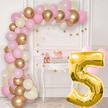 5 Yaş Krom Gold Pastel Pembe Ve Beyaz Balon Seti Gold Rakamlı Doğum Günü Balonu Şık Parti Süsleme Çok Renkli