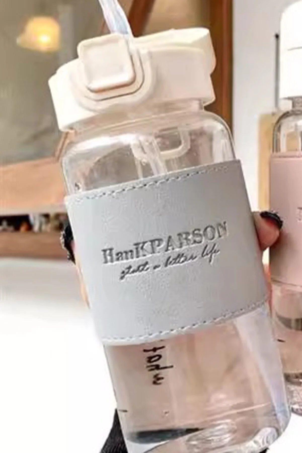 500 Ml Pipetli Plastik Su Şişesi Deri Kaplamalı Taşınabilir Sızdırmaz Öğrenciler Uygun Gri