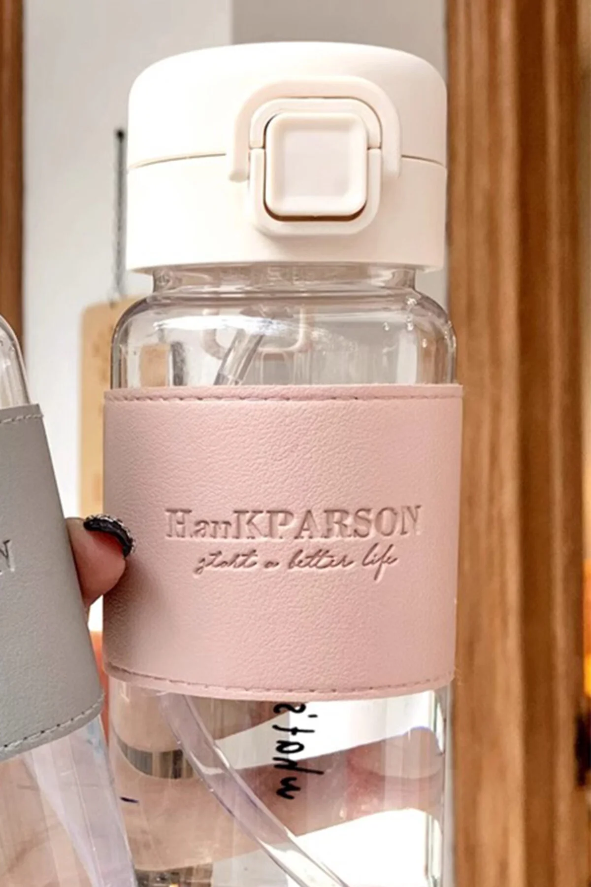 500 Ml Pipetli Plastik Su Şişesi Deri Kaplamalı Taşınabilir Sızdırmaz Öğrenciler Uygun Pembe
