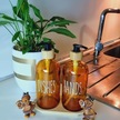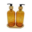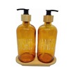 500ml Amber Cam Sıvı Sabunluk Seti, Bulaşık Ve El Sabunu İçin, Bambu Tepsili Siyah