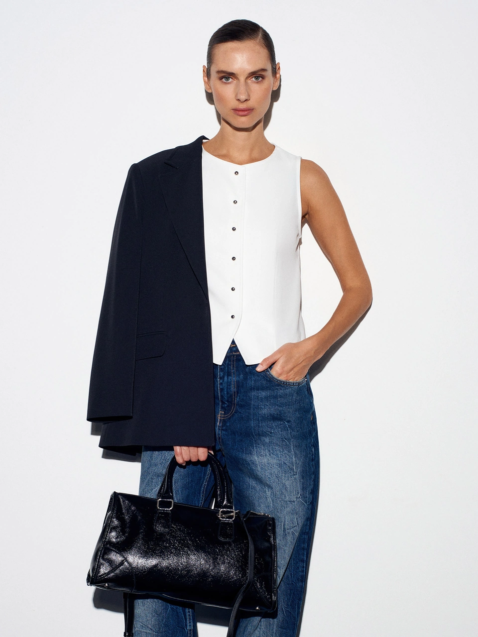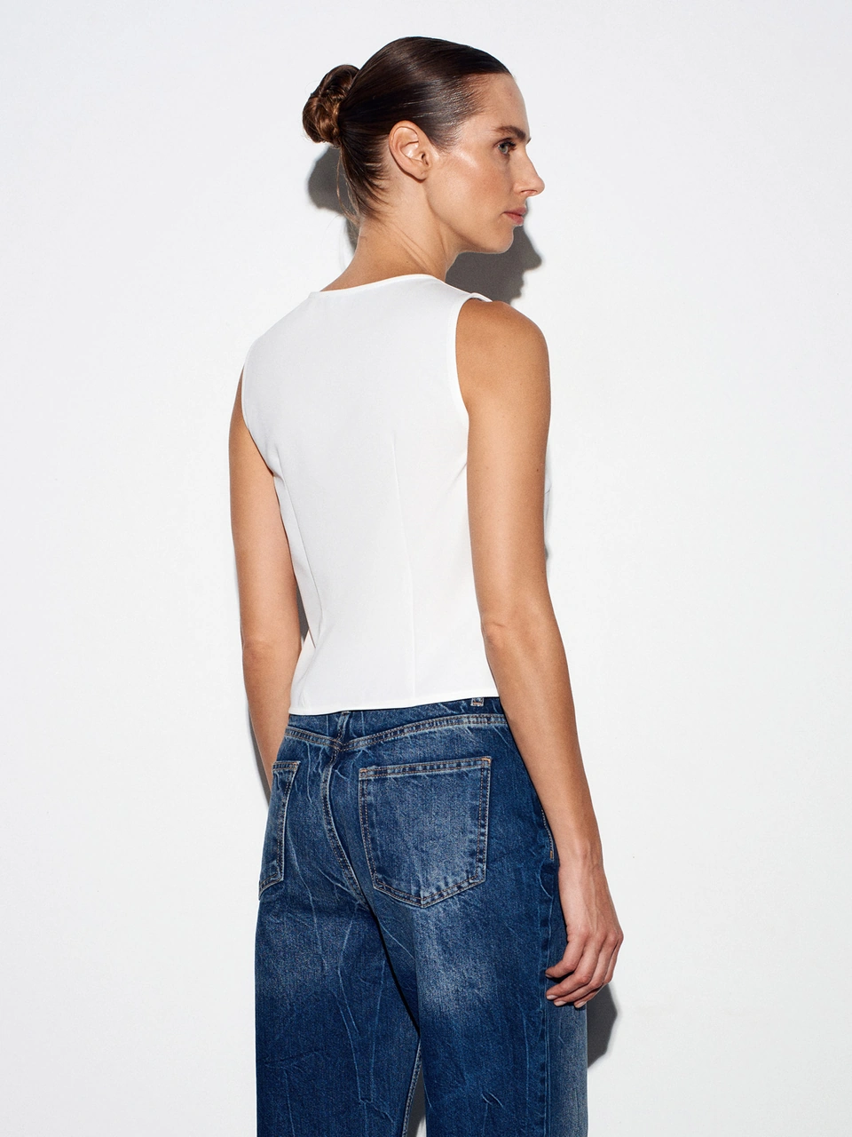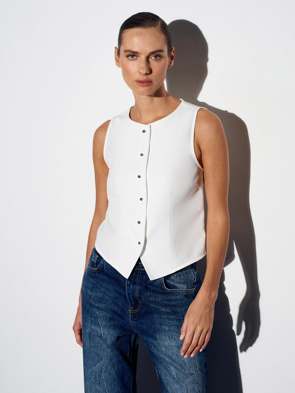 50528 Pens Detaylı Yelek-beyaz Beyaz