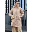 Kapüşonlu Düğmeli Peluş Mont - Kadın Beyaz