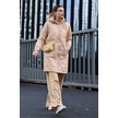 5138 Kapitone Uzun Şişme Mont - Bej Bej