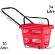 54 Litre 4 Tekerlekli Plastik Alışveriş El Sepeti Kırmızı 10 Adet / En:42 Boy:54 Yükseklik:44 Cm