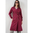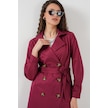 5853 Kruvaze Yaka Trençkot - Bordo Bordo