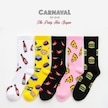 5'li Fast Food Desenli Fitilli Kutulu Çorap Seti Beyaz-sarı-siyah-pembe