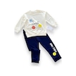 6-9-12-18 Ay Emoje Baskılı Pamuk Penye Kumaş Erkek Bebek Takımı Lacivert Lacivert