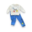 6-9-12-18 Ay Emoje Baskılı Pamuk Penye Kumaş Erkek Bebek Takımı Mavi Mavi