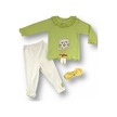 6-9 9-12 12-18 Ay Elbiseli Kedi Nakışlı Bandanalı Uzun Kollu Sweat 3lü Kız Bebek Takımı Yeşil