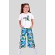 6-9 Yaş Desenli İspanyol Pantolon Tişört Kız Çocuk Takım Mavi Mavi