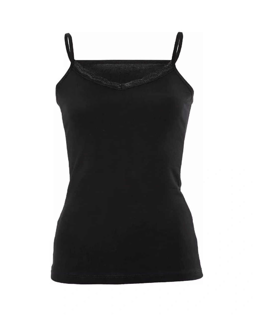 6 Adet Anıt Bayan Dantelli V Yaka İp Askılı Atlet 2809 Siyah