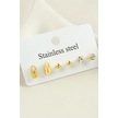 6 Adet Kalp Taşlı Çelik Küpe 0409 Altın