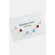 6 Adet Kare Renkli Zirkon Tek Taşlı Çelik Küpe 0400 Gümüş