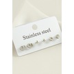 6 Adet Kedi Taşlı Çelik Küpe 0412 Gümüş