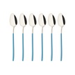 6 Adet Mavi Altın Çay Kaşığı Seti 18/10 Paslanmaz Çelik Çay Kaşığı Gümüş Küçük Tatlı Kahve Kaşığı 5.5 İnç Mavi - Gümüş