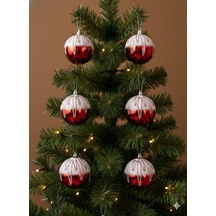 6 Adet Yılbaşı Ağacı Top Süsü 8 Cm - Kırmızı Pullu Ve Yoğun Simli Lüks Ağaç Dekorasyonu Seti Özel Pvc Kutulu
