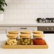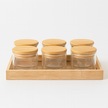 6 Borosilikat Cam Kahvaltılık Bambu Tepsili -bambu Kapaklı Kahvaltilik- 90 X 70 Mm Beyaz