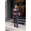 6 Düğmeli Kruvaze Ekose Takım Bordo Bordo