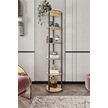 6 Katlı Dekoratif Yuvarlak Kitaplık Meşe Meşe