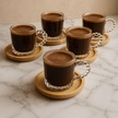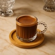 6 Kişilik 12 Parça Cam Bambu Tabaklı Kahve Fincan Takımı Seti 130ml Şeffaf