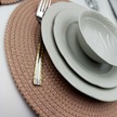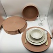 6 Kişilik Pudra Rengi Amerikan Servis, Hasır Supla Takımı Pudra