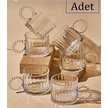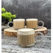 6 Lı Boncuk Desen Kulplu Cam Kupa 300 Cc Beyaz