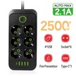 6 Lı Priz 6 Soket 220v 4usb 5v2.1a 1 Pd 2.1a Şarj Çoklu Priz