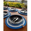 6 Lı Yuvarlak Supla Takımı Kolay Temizlenebilir, Modern Sofralar İçin Beyaz - Mavi