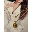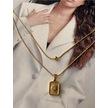 60 Cm Tek Taşlı Kare Güneş Paslanmaz Çelik Kararmaz Kadın Kolye Altın