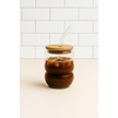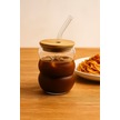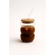600 Ml Borosilikat Cam Bardak Bambu Kapaklı, Bubble Form, Isıya Dayanıklı Şeffaf Tasarım Cam - Şeffaf