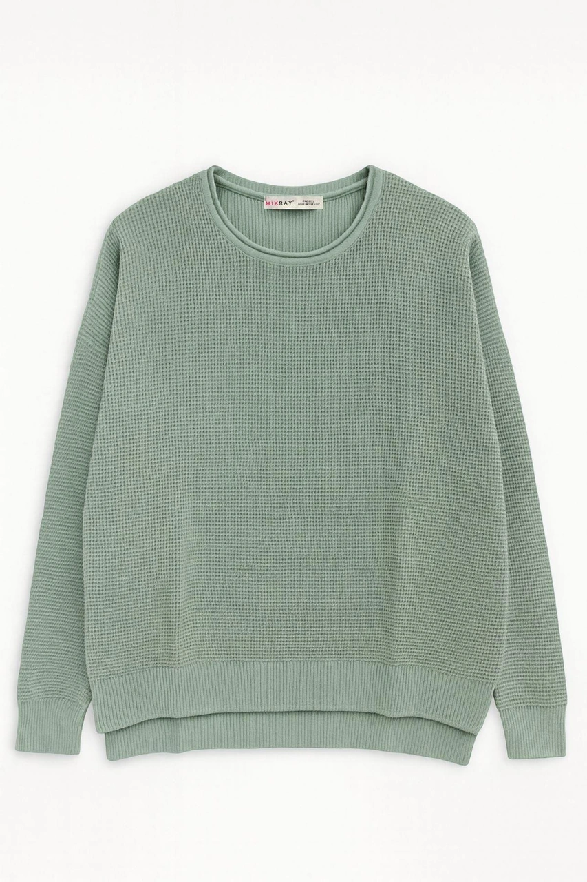6183 Kadın Nopeli Oversize Triko İnce Kazak Çağla Çağla