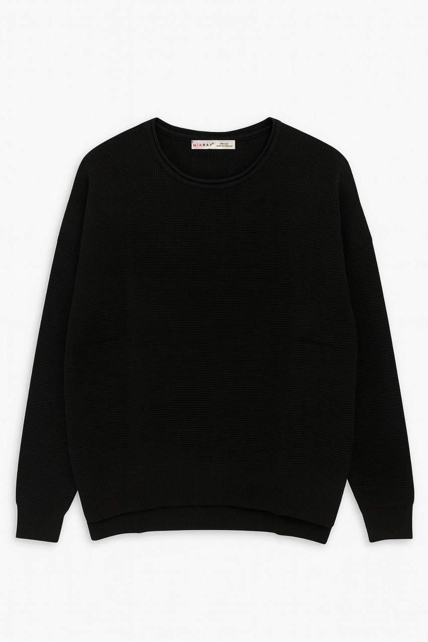 6183 Kadın Nopeli Oversize Triko İnce Kazak Siyah Siyah