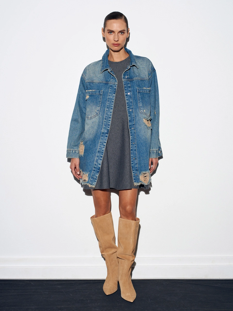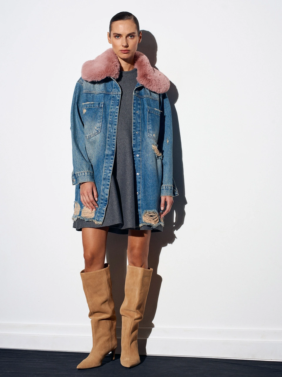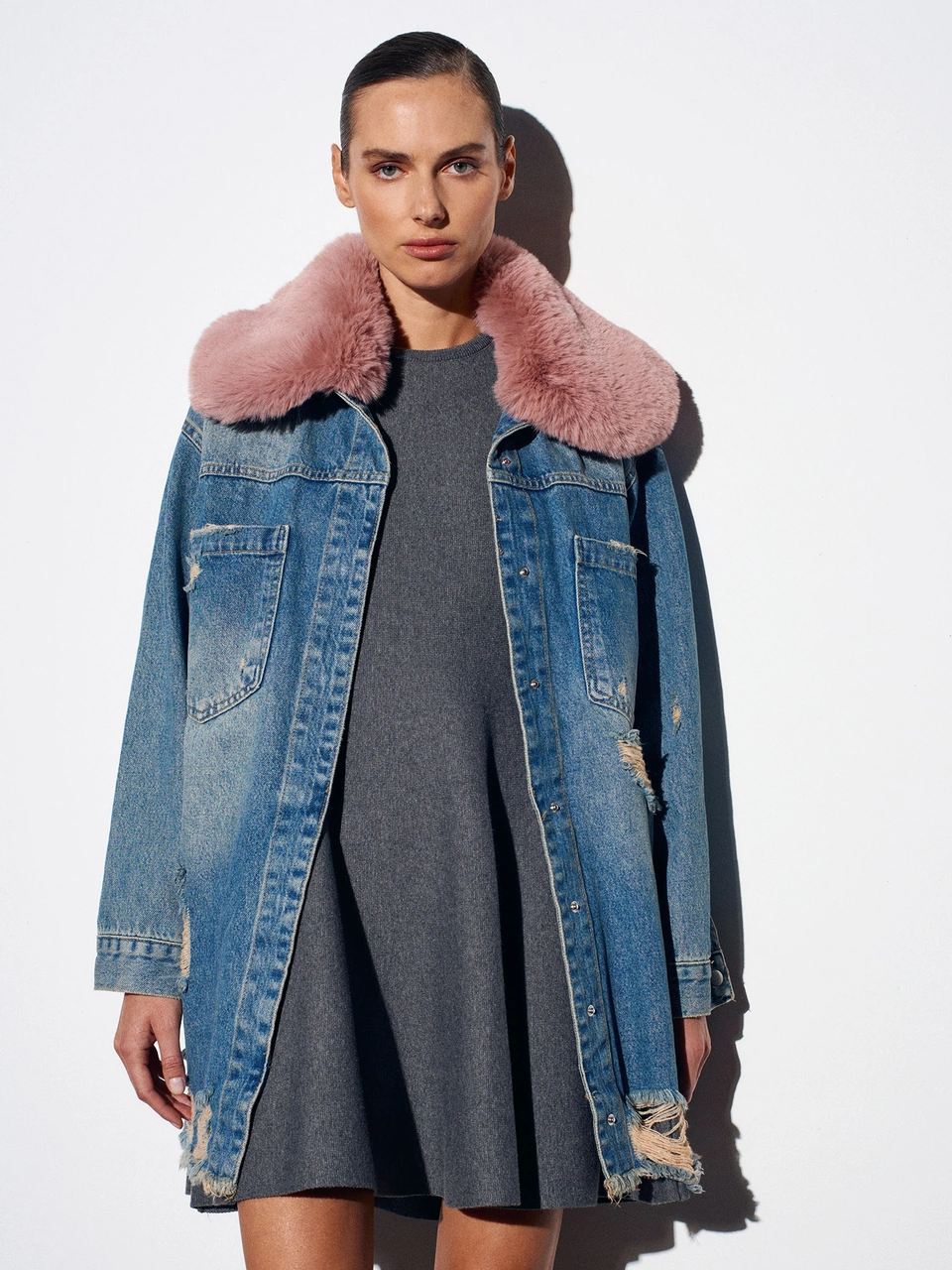 65378 %100 Pamuk Çıkarılabilir Kürklü Kot Ceket-tint Tint
