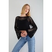 6853 Kadın Ispanyol Kol Ajurlu Crop Kazak Siyah Siyah