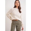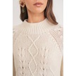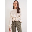 6855 Kadın Dik Yaka Saç Örgülü Triko Kazak Krem Krem