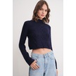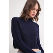 6855 Kadın Dik Yaka Saç Örgülü Triko Kazak Lacivert Lacivert
