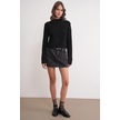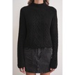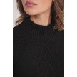 6855 Kadın Dik Yaka Saç Örgülü Triko Kazak Siyah Siyah